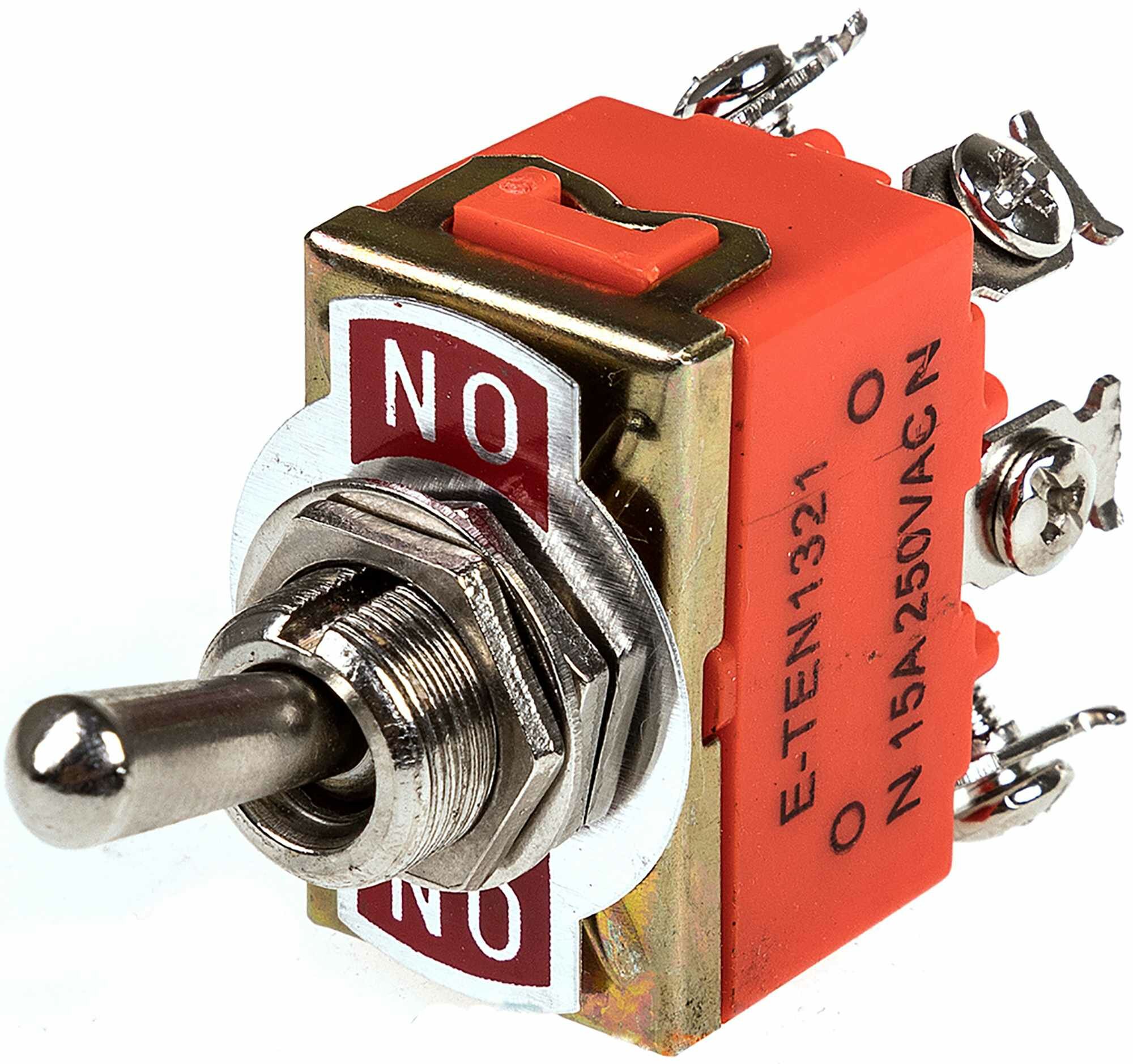 **Тумблер** — Тумблер применяется в радиоэлектронике для коммутации электроцепей постоянного и переменного тока напряжением до 250В и обеспечивающее требуемый рабочий режим. Металлический перекидной переключатель имеет 3 типа переключения ON-OFF-ON. Подключение контактов осуществляется с помощью винтов.Такая разновидность переключателей применяется на лицевых панелях в качестве комплектующих изделий различного электрооборудования (в измерительных приборах, блоках питания, электроустановках на различных производствах, легковых и грузовых автомобилях, поездах и многих других местах).