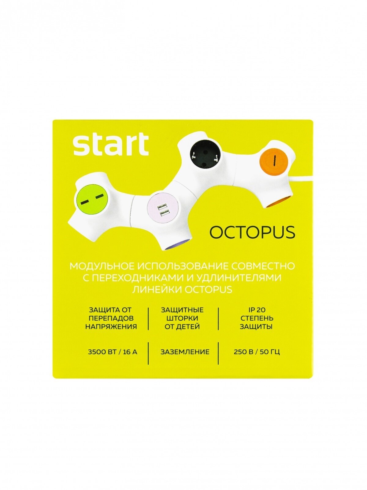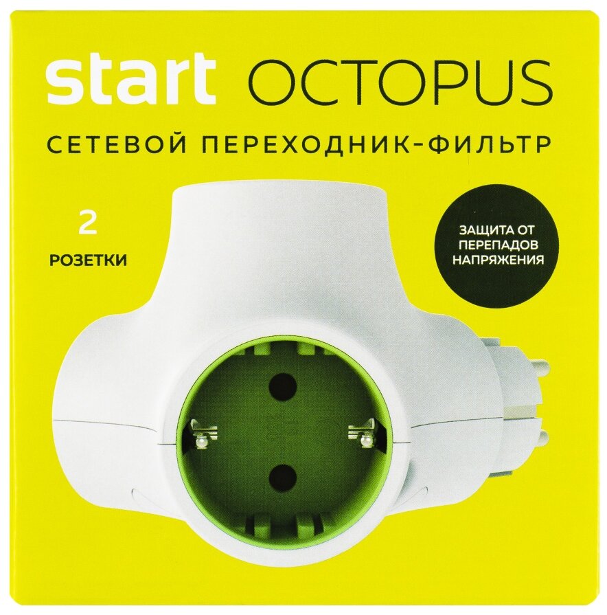 переходник сетевой СТАРТ Octopus 16А 3500Вт 2 розетки белый зеленый С/А-Ф SPA1/2-ZD