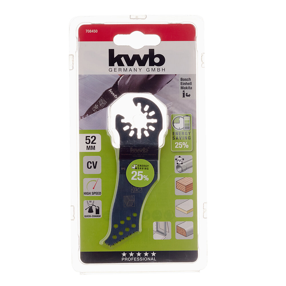 Пильное полотно kwb Energy Saving (Артикул производителя: 708450) сделано из хром-ванадиевой стали, имеет специальную заточку зубьев, позволяющую осуществлять быстрые и чистые пропилы. Идеально подходит для использования в аккумуляторном инструменте благодаря технологии Energy Saving, позволяющей пропиливать заготовки до 25% быстрее, экономя при этом заряд аккумулятора. Применяется для пропила всех типов древесины, паркета, ДСП, пластика, пластиковых труб, гипсокартона. Ширина: 25+7мм. Глубина: 52 мм. Расстояние между зубьями: 1,58 мм. Материал: Хром-ванадиевая сталь. Тип: погружное.
