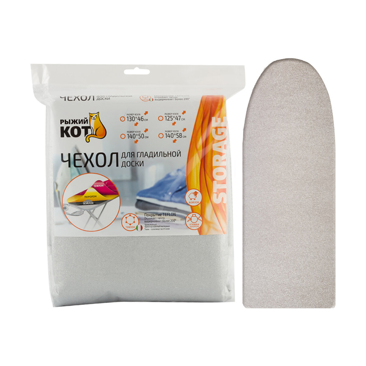 чехол для гладильной доски РЫЖИЙ КОТ триплированный 130х46см тефлон FIBRETEX (312515)