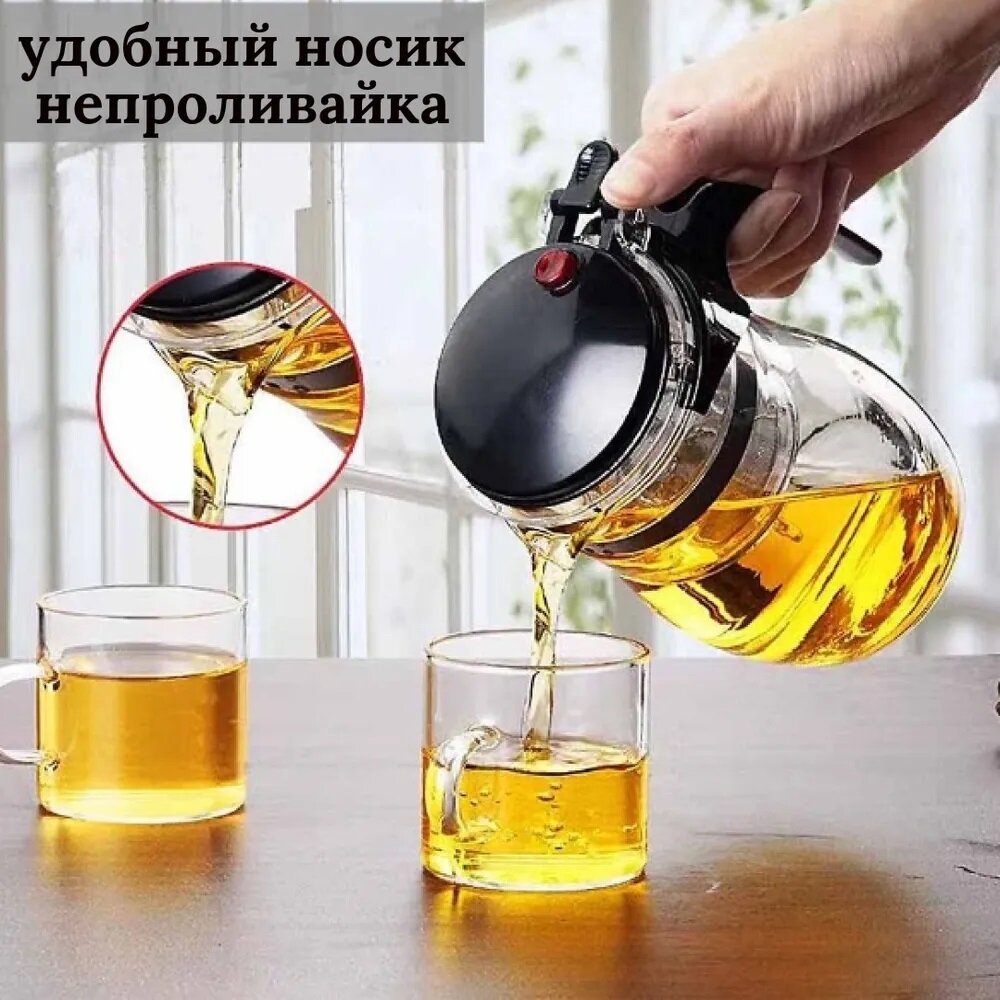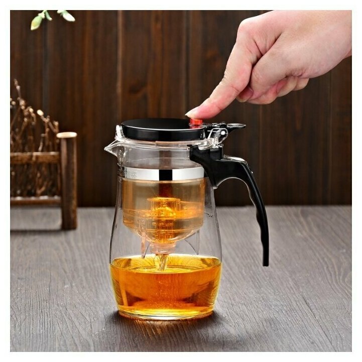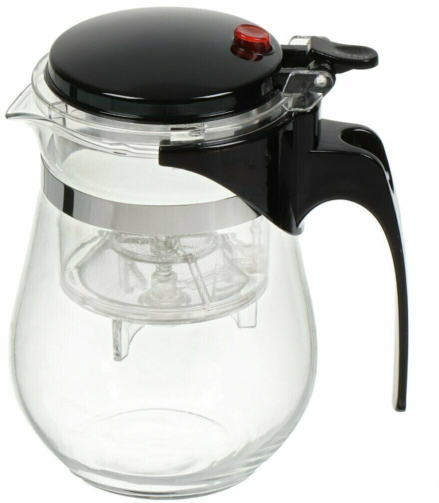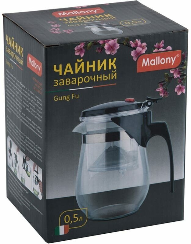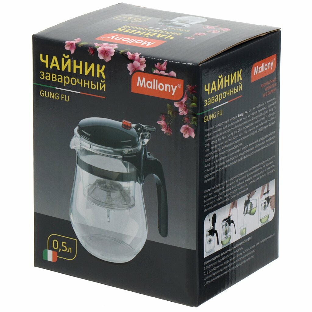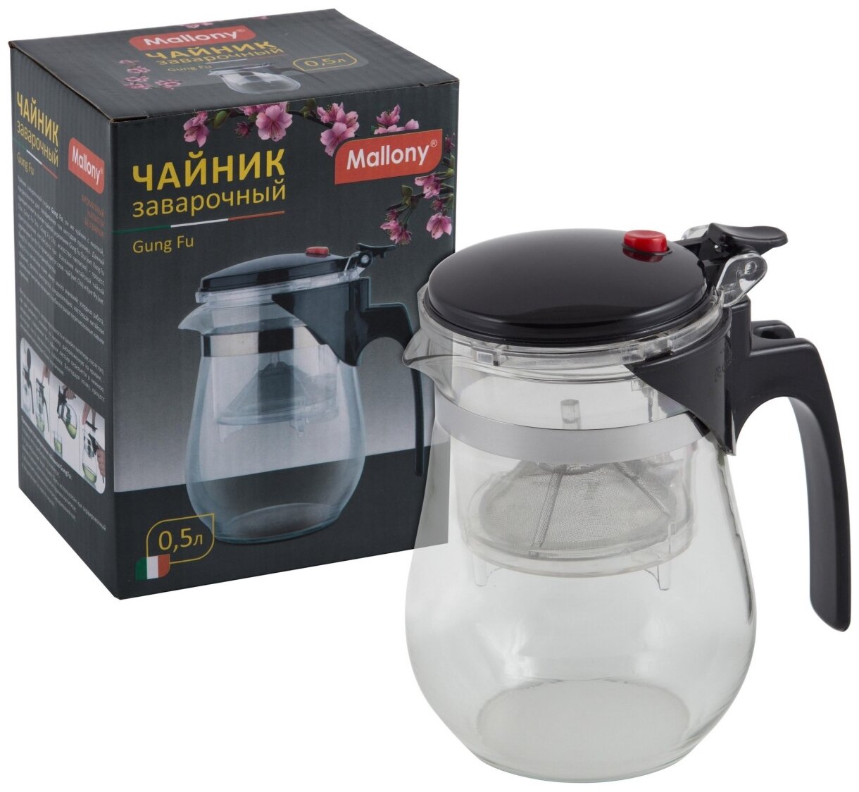 чайник заварочный MALLONY Gung Fu 500мл с кнопкой стекло пластик нерж.сталь (004532)