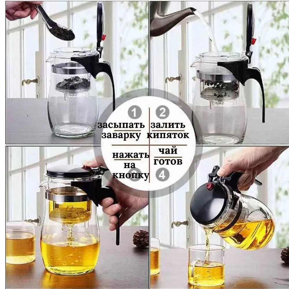 Сервис сравнения цен СкидкаГИД предлагает сравнить цены на товар «чайник заварочный MALLONY Gung Fu 500мл с кнопкой стекло пластик нерж.сталь (004532)»
