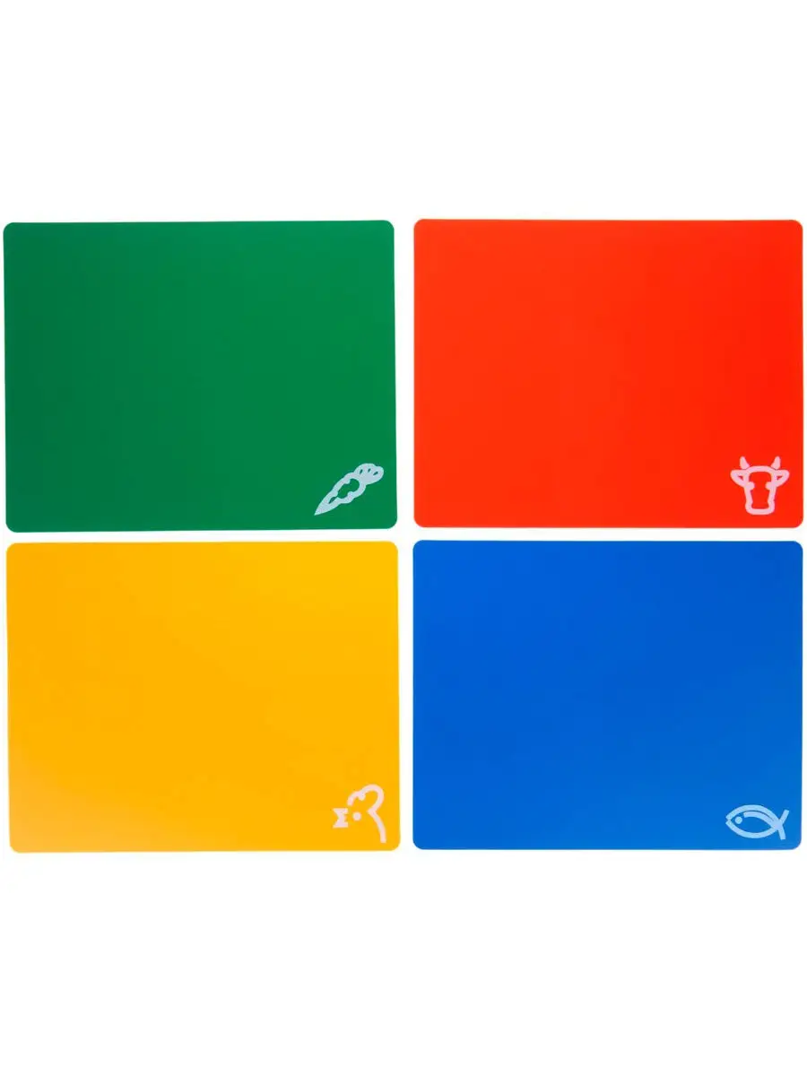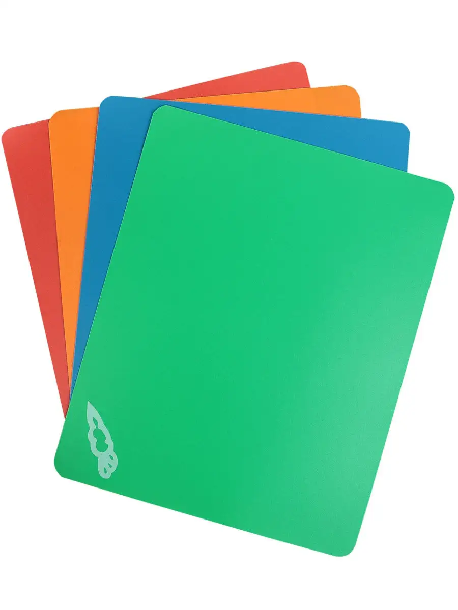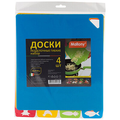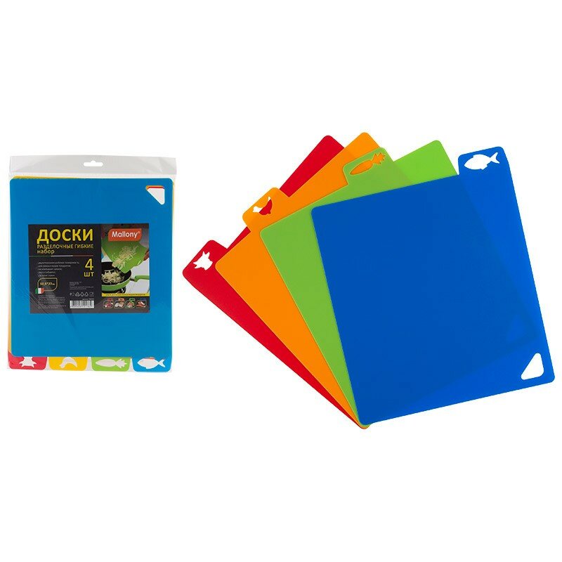 Разделочная доска в наборе 4 шт выполнена из высококачественного материала. Гибкие доски предназначены для разделывания рыбы, мяса, фруктов, колбасы, сыра и хлеба . Кухонный аксессуар не тупит ножи благодаря мягкому материалу, а гибкость пластиковой доски позволяют аккуратно и легко переносить нарезанные продукты в посуду. Разделочные доски для дома имеют отверстия для подвешивания на крючке, небольшая толщиной позволит значительно упростить их хранение и сэкономит драгоценное место на кухне. Кухонные доски необходимы каждой хозяйке.