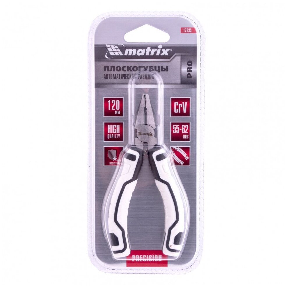 Плоскогубцы Matrix PRO Mini 17833 длиной 120 мм, с авторазжимом, позволяют работать с мелкими предметами и перекусывать тонкие проводки и проволоку. Губки с ребристой поверхностью надежно фиксируют детали. Благодаря авторазжиму не нужно прикладывать дополнительные усилия для разжимания губок. Плоскогубцы используются для проведения высокоточных работ в области слесарного дела, электромонтажа, ремонта электроники и бытовой техники, а также для решения бытовых задач.