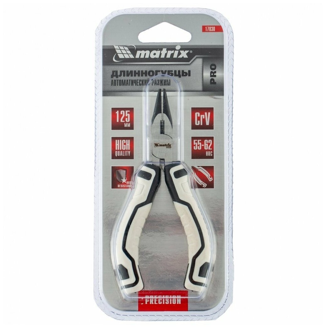 | Прочие особенности и свойства | Длинногубцы прямые торговой марки Matrix серии PRECISION применяются при проведении монтажных и слесарных работ, в которых требуется точность при манипуляции и удержании небольших по размеру предметов., Сталь хром-ванадий., Авторазжим и двухкомпонентные рукоятки для удобства в работе. |