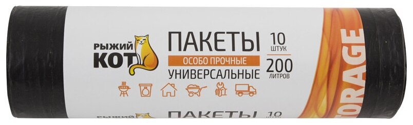 пакеты для мусора РЫЖИЙ КОТ 200л 10шт 30мкм 102х85см (006978)