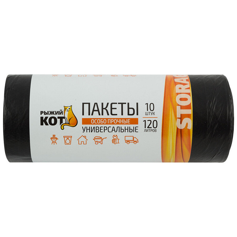 пакеты для мусора РЫЖИЙ КОТ 120л 10шт 70х110см 40мкм (310410)