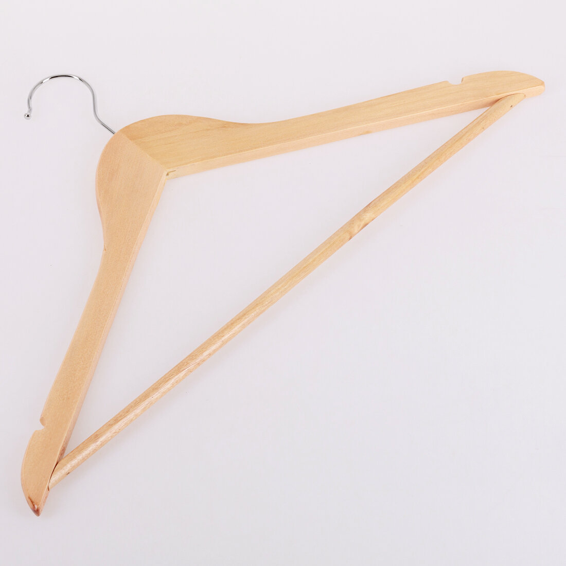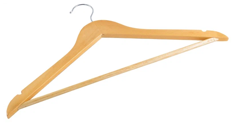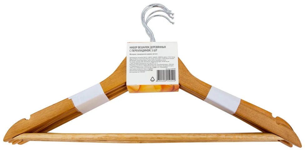 Набор вешалок деревянных с перекладиной 5 шт. Классический вариант. Идеально отполирована и покрыта лаком, наличие перекладины позволит хранить на одной вешалке несколько вещей (брюки, рубашку, кофту и т.д.), а удобные выемки на плечиках вешалки послужат для хранения вещей с тонкими лямками.