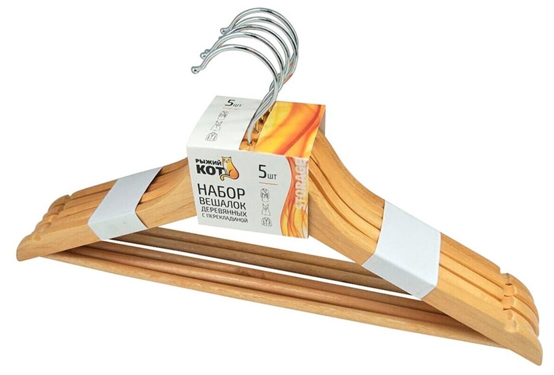 набор вешалок РЫЖИЙ КОТ 5шт 45см универсальные дерево с выемками (007769) (размер: 48-50)
