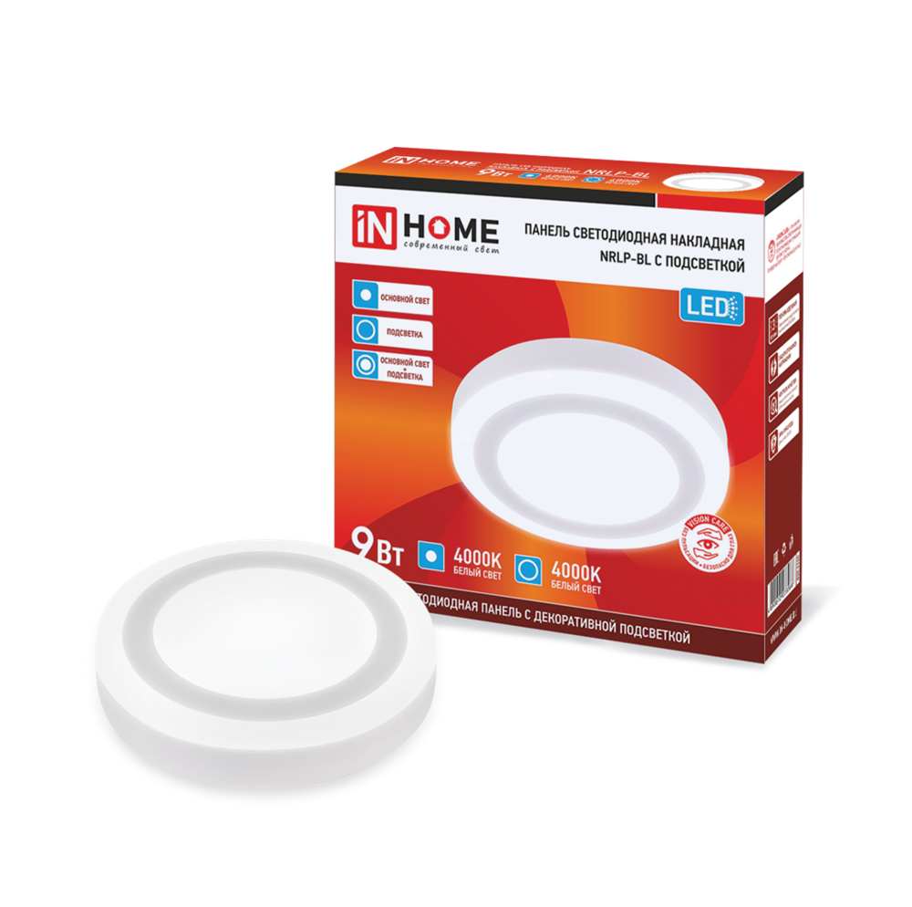 светильник накладкой In Home NRLP-BL 9Вт 230В 4000К 540Лм IP20 145мм с подсветкой белый