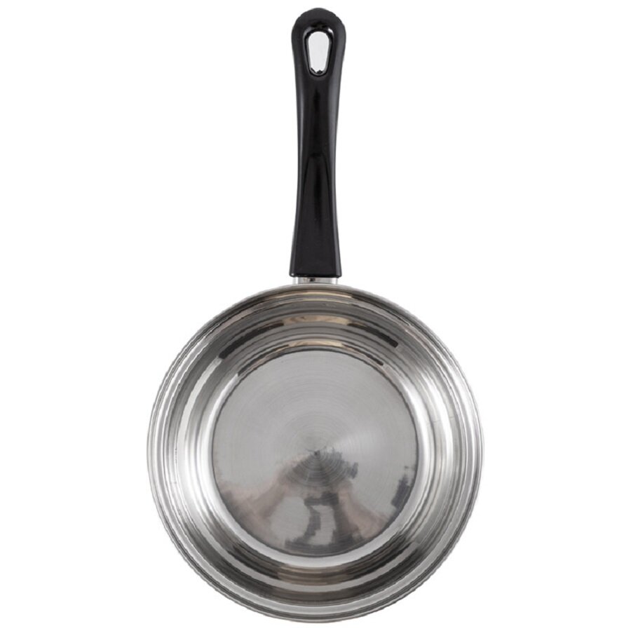 Материал: нерж сталь 201, бакелит, алюминий, 430 сталь, жаропрочное стекло. Толщина 201 стали 0,35 мм. Ручка на крышке бакелитовая с вставкой из нерж стали, боковая ручка - бакелитовая, зеркальная полировка корпуса внутри и снаружи. Подходит для всех типов плит (дно 3 слойное: 201 сталь+1 мм алюминий+430 сталь (база для индукции)). Объем 1,9 л. Размер: 16*9,5 см. Упаковка: стикер+термоусадочная пленка.