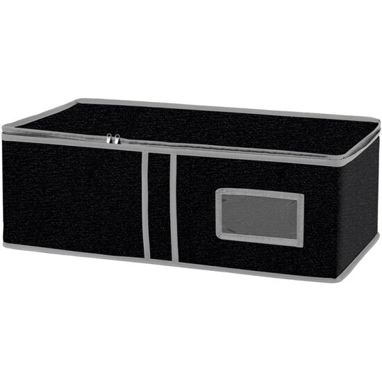 Материал/состав: спанбонд, плотность 70гр/квм, двусторонняя молния, пленка ПВХ;Размер: 60х30х20см;Индивидуальная упаковка: п/э пакет с европодвесом и цветным вкладышем;Цвет: черный с серым кантомТвердые стенки и дно. Предохраняет Ваши вещи от загрязнения и преждевременного старения.Закрывается крышкой на двусторонней молнии, окошко для записей в передней стенке, удобная ручка.