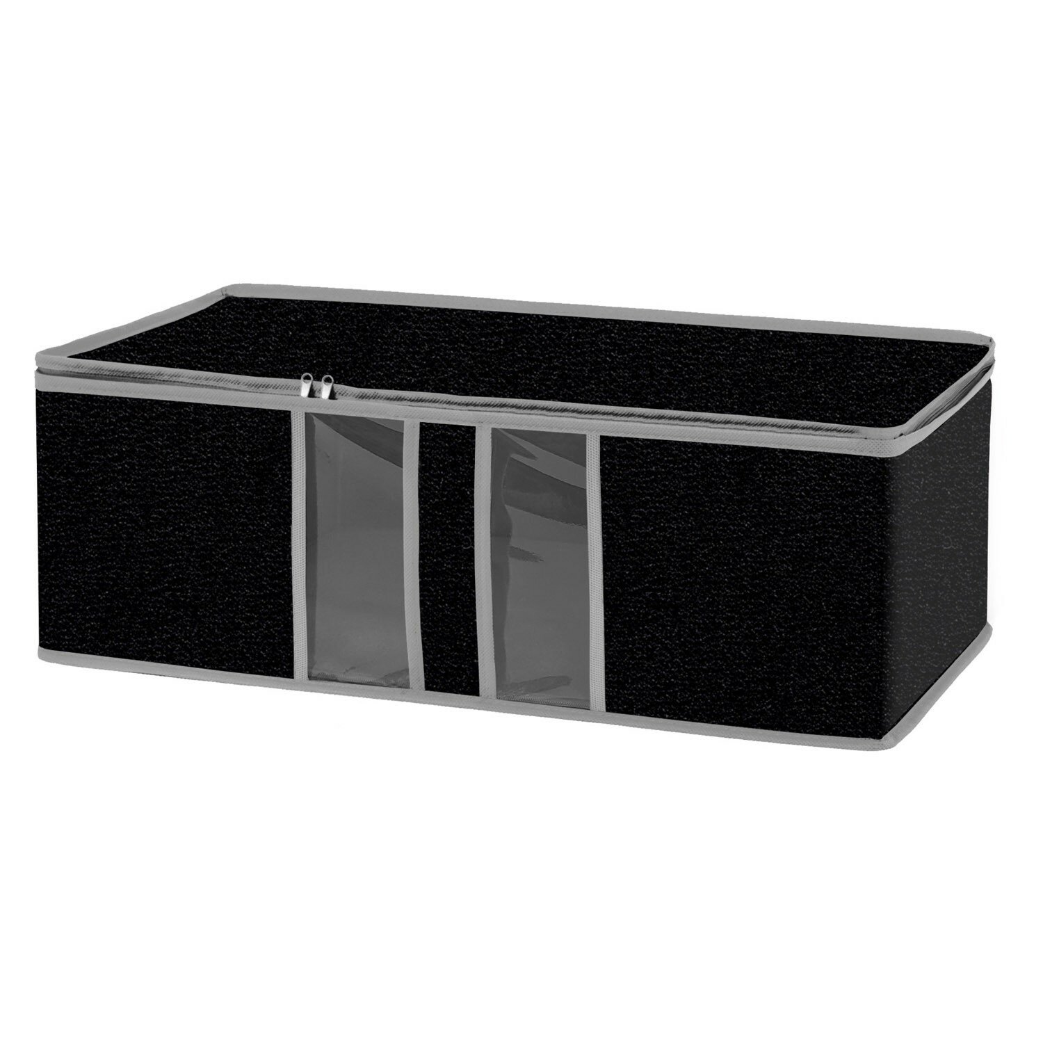 Ящик текстильный для хранения вещей "Black" 60х30х20 см. Материал/состав: спанбонд, плотность 70гр/квм, двусторонняя молния, пленка ПВХ. Размер: 60х30х20см. Индивидуальная упаковка: п/э пакет с европодвесом и цветным вкладышем. Цвет: черный с серым кантом. Твердые стенки и дно. Предохраняет Ваши вещи от загрязнения и преждевременного старения. Закрывается крышкой на двустор молнии, прозрачное окошко в передней стенке, удобная ручка.