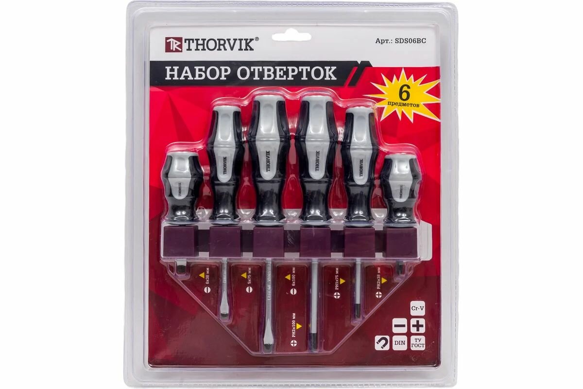 набор отверток THORVIK на держателе 6 предметов (SDS06BC)