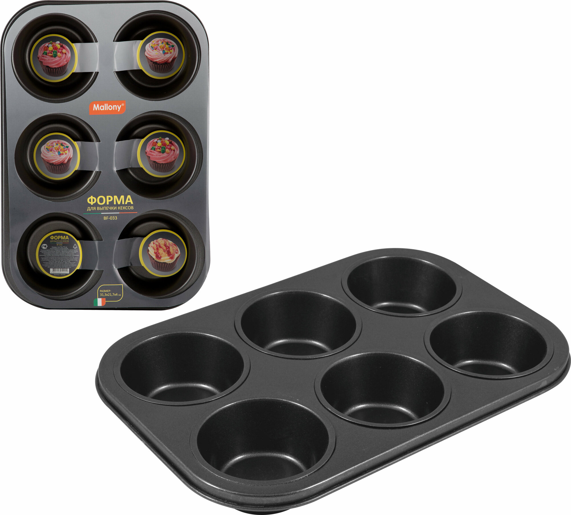 форма для выпечки кексов MALLONY 313х217х4см 6ячеек антипр. покрытие сталь (191315)