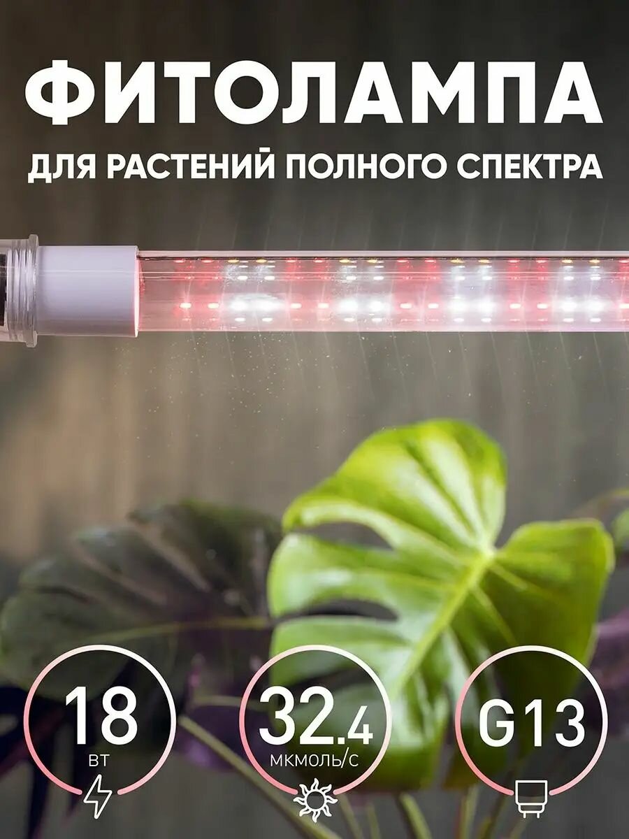лампа светодиодная для растений ФИТО ЭРА 18Вт T8 G13 1200мм полноспектральная FITO-18W-Ra90-Т8-G13-NL