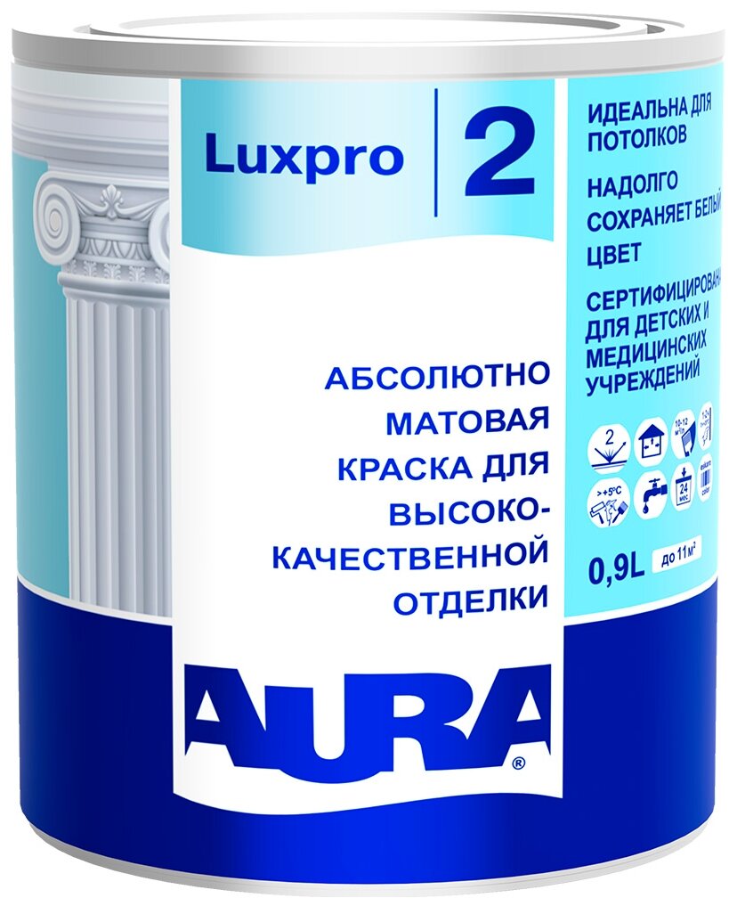 краска в/д AURA Luxpro 2 для стен и потолков акриловая глуб арт.4607003916510