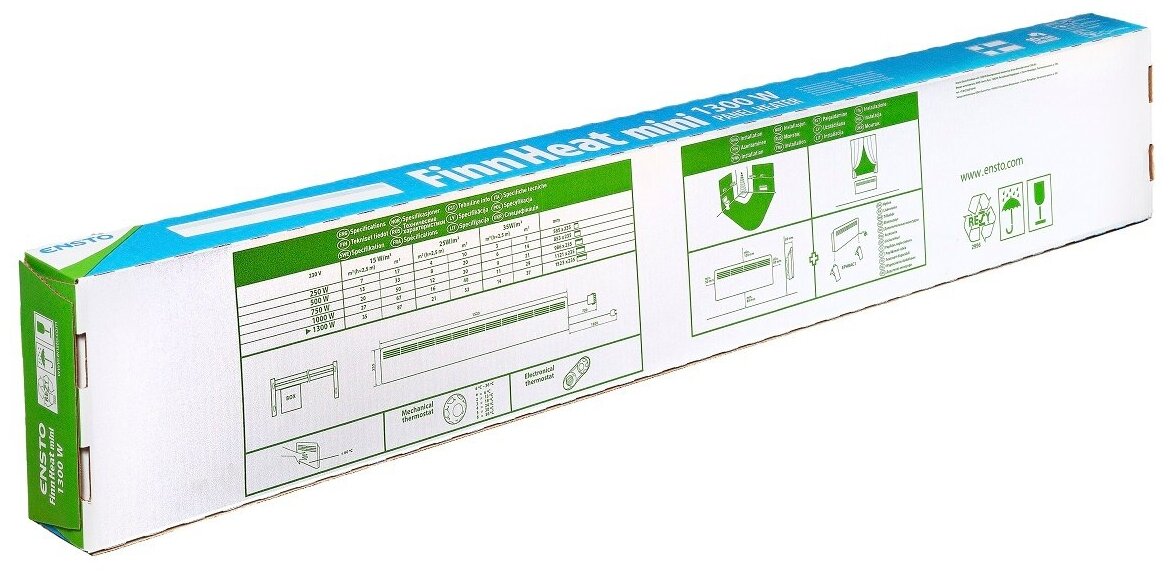 конвектор ENSTO EPHBMM13PR 1300 Вт механический 235х1523х85 мм настенная/напольная установка FinnHeat Mini EPHBMM13PR 1523х235 1300Вт. с механическим термостатом