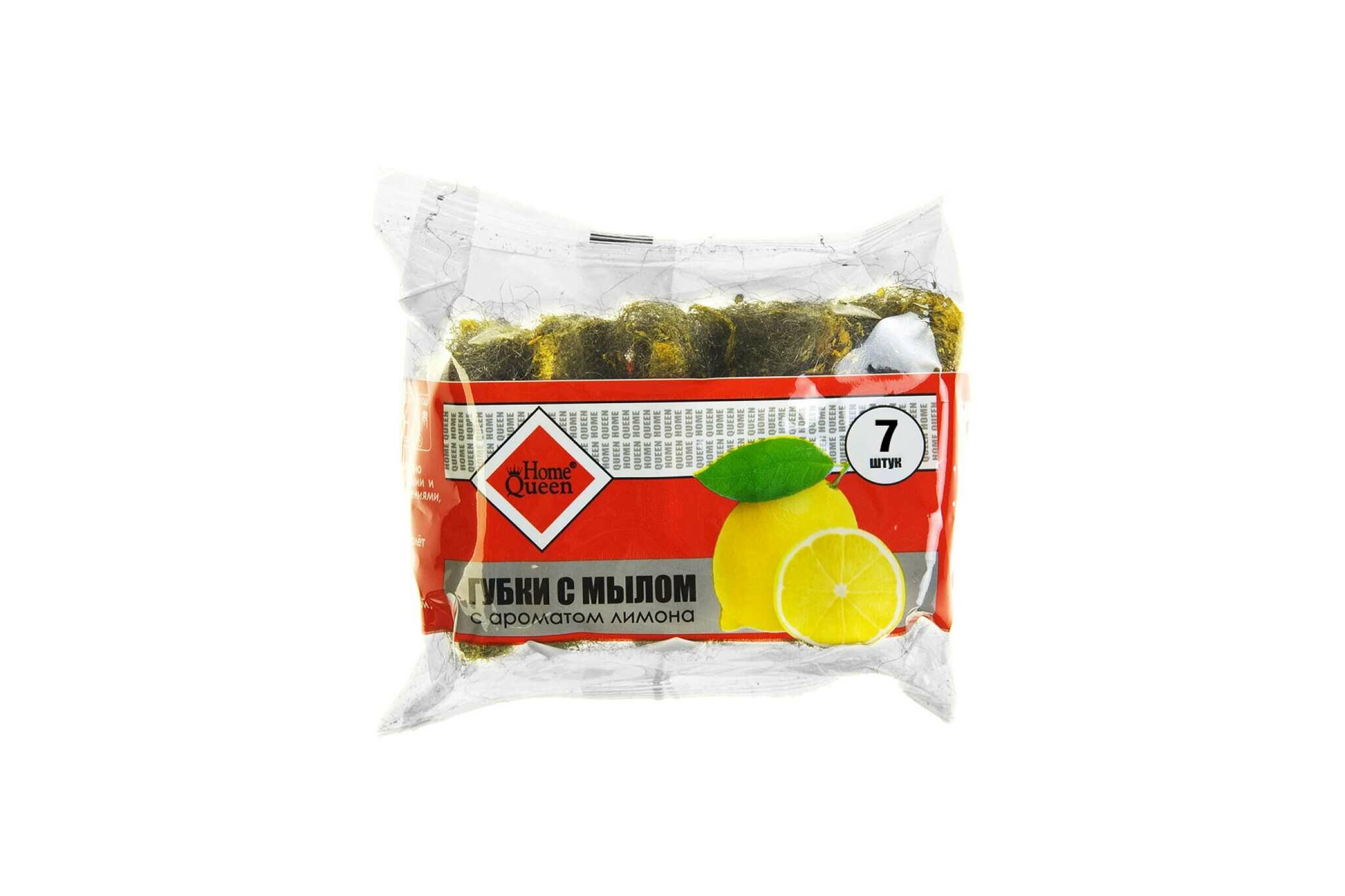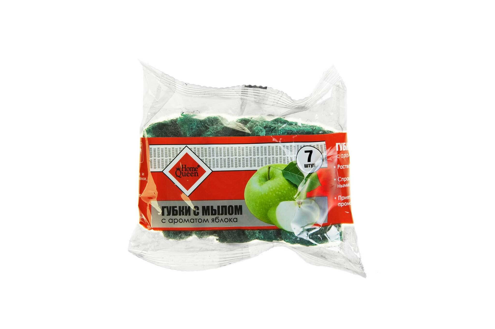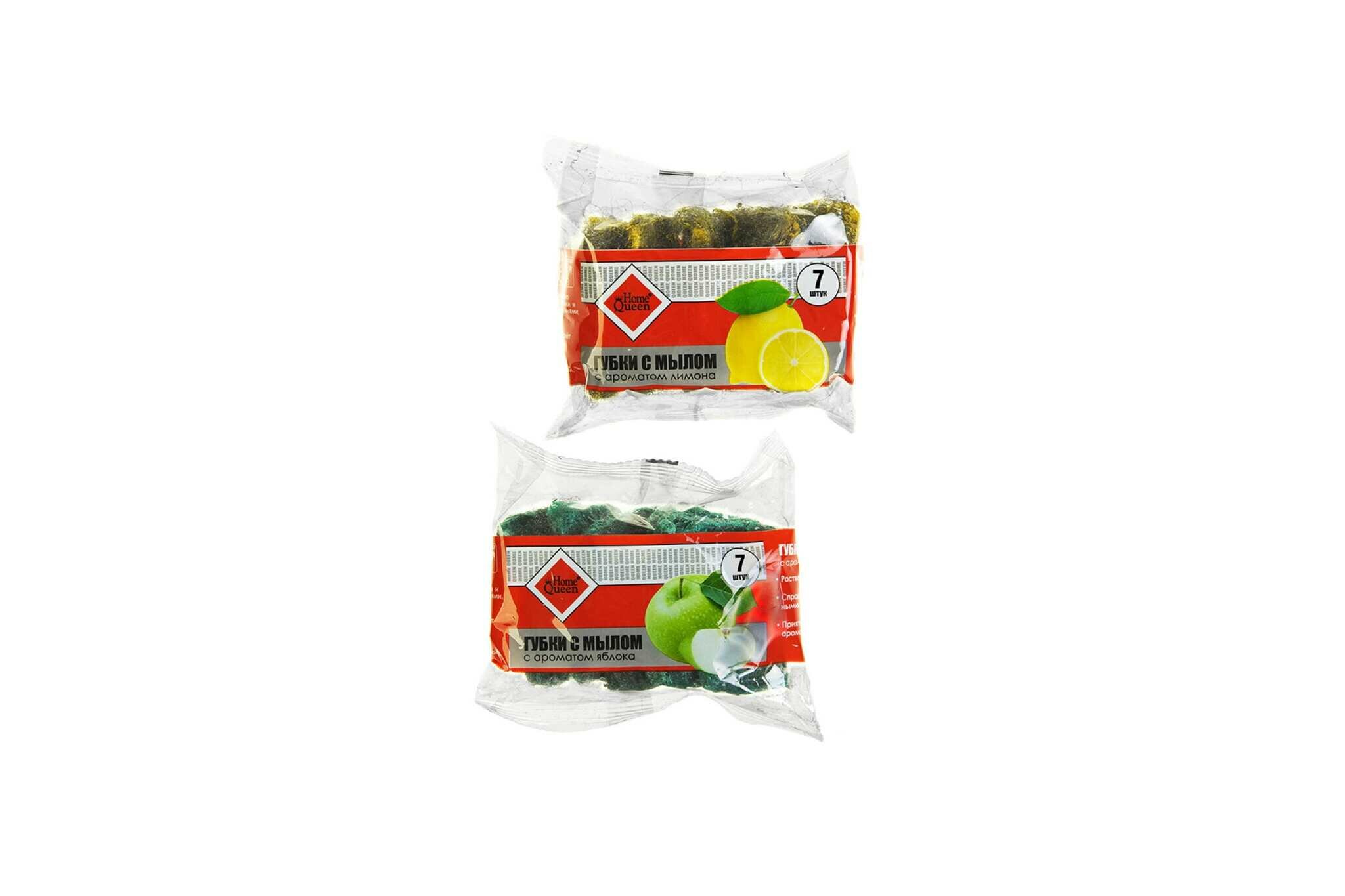набор губок HOMEQUEEN 7 шт с мылом запах яблоко и лимон в миксе стальное волокно (56542)