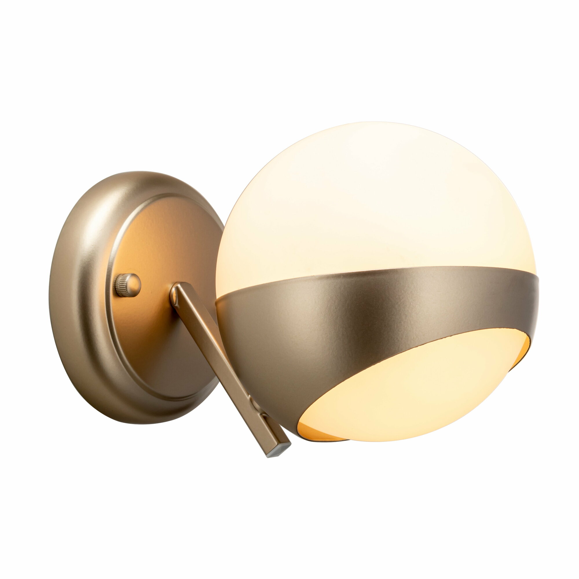 Изящное бра L1244-1A MAARDU, E14*макс 40Вт выполнено в современном стиле, арматура окрашена в благородный цвет шампань. Качественная конструкция из металла включает в себя круглое основание, прямой рожок и элегантное кольцо-держатель для рассеивателя. Плафон из качественного матового стекла имеет молочный оттенок. Свет мягкий, рассеивающийся. Бра Маарду будет отлично смотреться в спальне и детской возле кровати, в гостиной около дивана или в кухне над столом. Светильник MAARDU можно размещать на изолированном застекленном балконе, например, в уголке отдыха, рядом с креслом. Для основного освещения в коллекции представлена люстра на 5 рожков. Лампочки не входят в комплект, мы рекомендуем использовать светодиодные с меньшей мощностью и большим световым потоком. По всем вопросам обращайтесь к менеджерам компании Лампландия. Гарантия – 1 год.