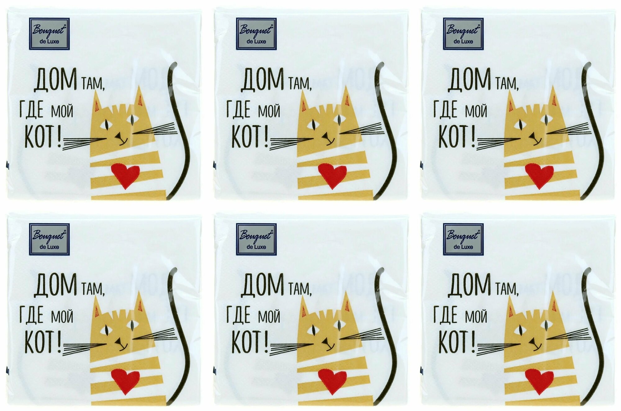 Салфетки бумажные Bouquet "Дом там, где кот" трехслойные, 24х24 см, 25 листов.