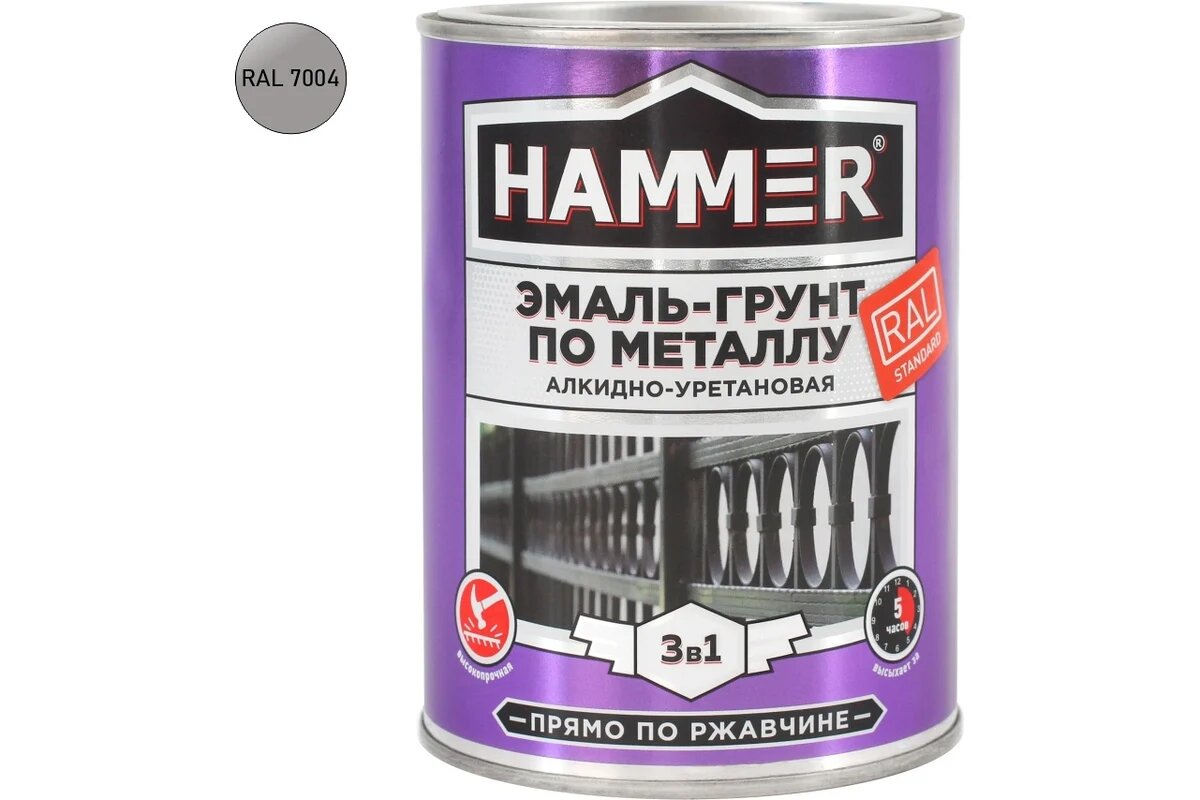эмаль-грунт по металлу HAMMER 09кг RAL7004 сигнальный серый арт.ЭК000133621