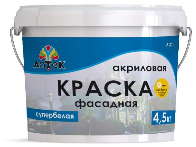 краска акриловая фасадная ЛАТЕК Л301 45кг белая арт. 4607067846686