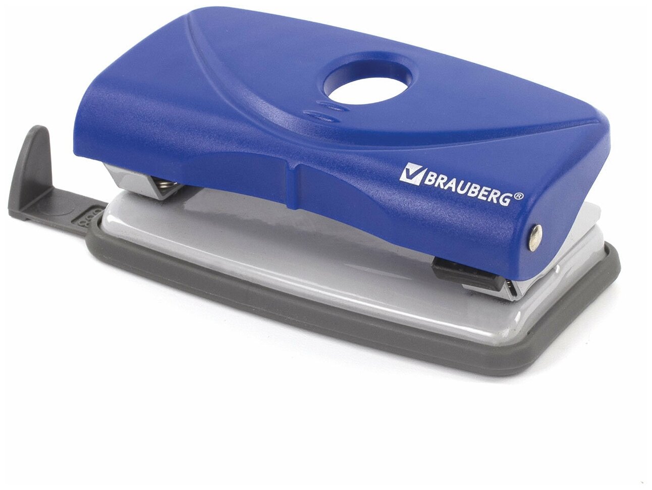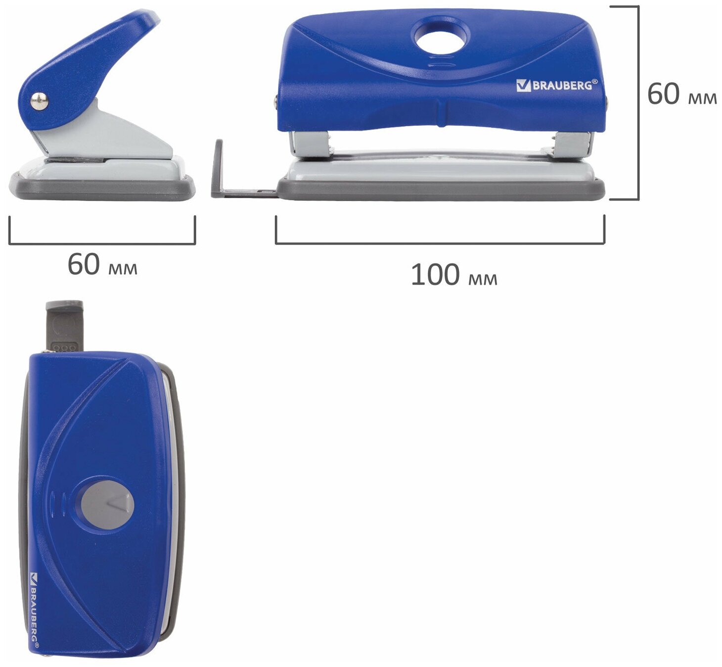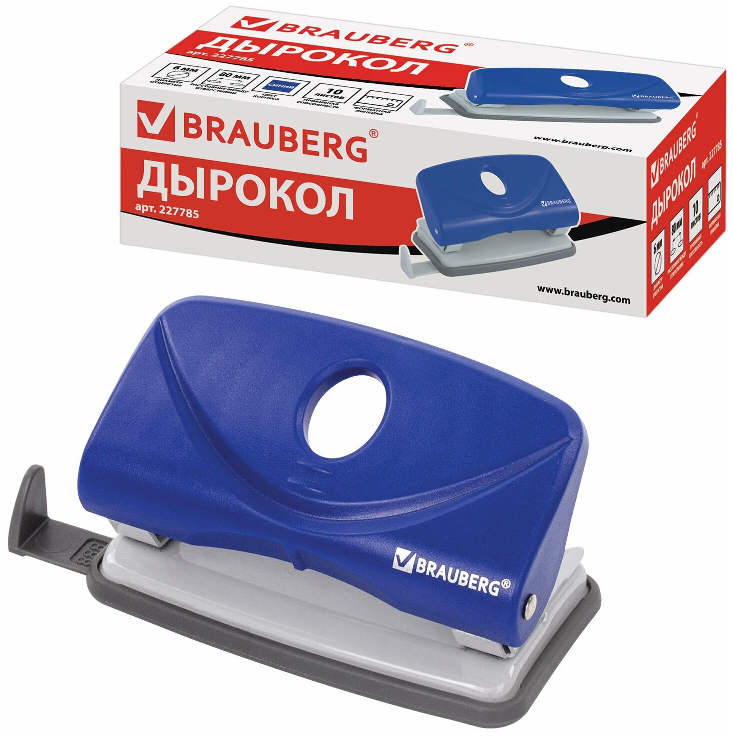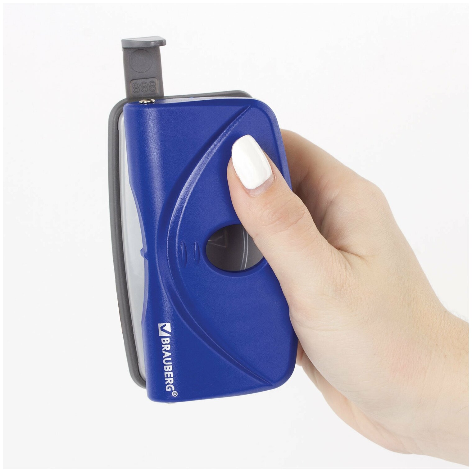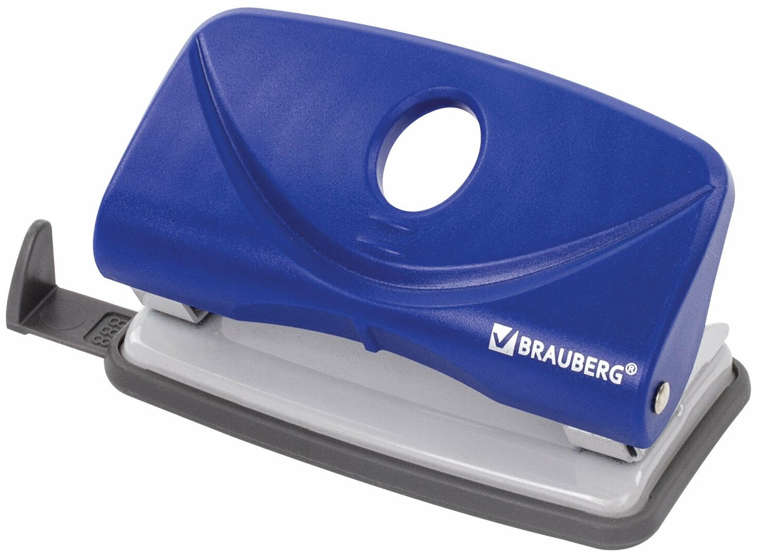 Дырокол BRAUBERG "Original", до 10 листов, синий, . Продается набором по (2 шт.) Дырокол для бумаг – это необходимый офисный предмет, с применением которого можно аккуратно пробивать отверстия в бумаге и затем подшивать документы в папку. Офисный аксессуар предназначен для перфорации бумаги. Дырокол эргономичного дизайна с качественными пробойниками обеспечивает легкое и точное пробивание бумаги. Дырокол BRAUBERG "Original" способен пробить за один раз 10 листов бумаги. Стандартное количество пробиваемых отверстий - 2, диаметр каждого - 6 мм. Благодаря расстоянию между отверстиями в 8 см проколотые дыроколом листы могут храниться в папке идеально ровно и не мяться. Когда будет завершен отчетный период, они обычно сшиваются ниткой и снимаются с металлических колец. Метка центрирования поможет ровно разместить листы. Наличие ограничительной линейки позволяет пробить отверстия в нужном месте, что делает возможным сложить документы в папку ровной стопкой. Дырокол оснащен блокиратором для компактного хранения. Текстурная поверхность позволяет рукам не скользить во время работы. Основная задача контейнера для конфетти состоит в сборе мусора, благодаря чему не будет постоянно загрязняться рабочее пространство. Малые размеры делового аксессуара помогут с легкостью разместить на рабочем столе, а синий цвет в сочетании с серым отлично впишется в любой интерьер. Отличное качество дырокола BRAUBERG "Original" по доступной цене навсегда станет незаменимым помощником при работе с документацией.